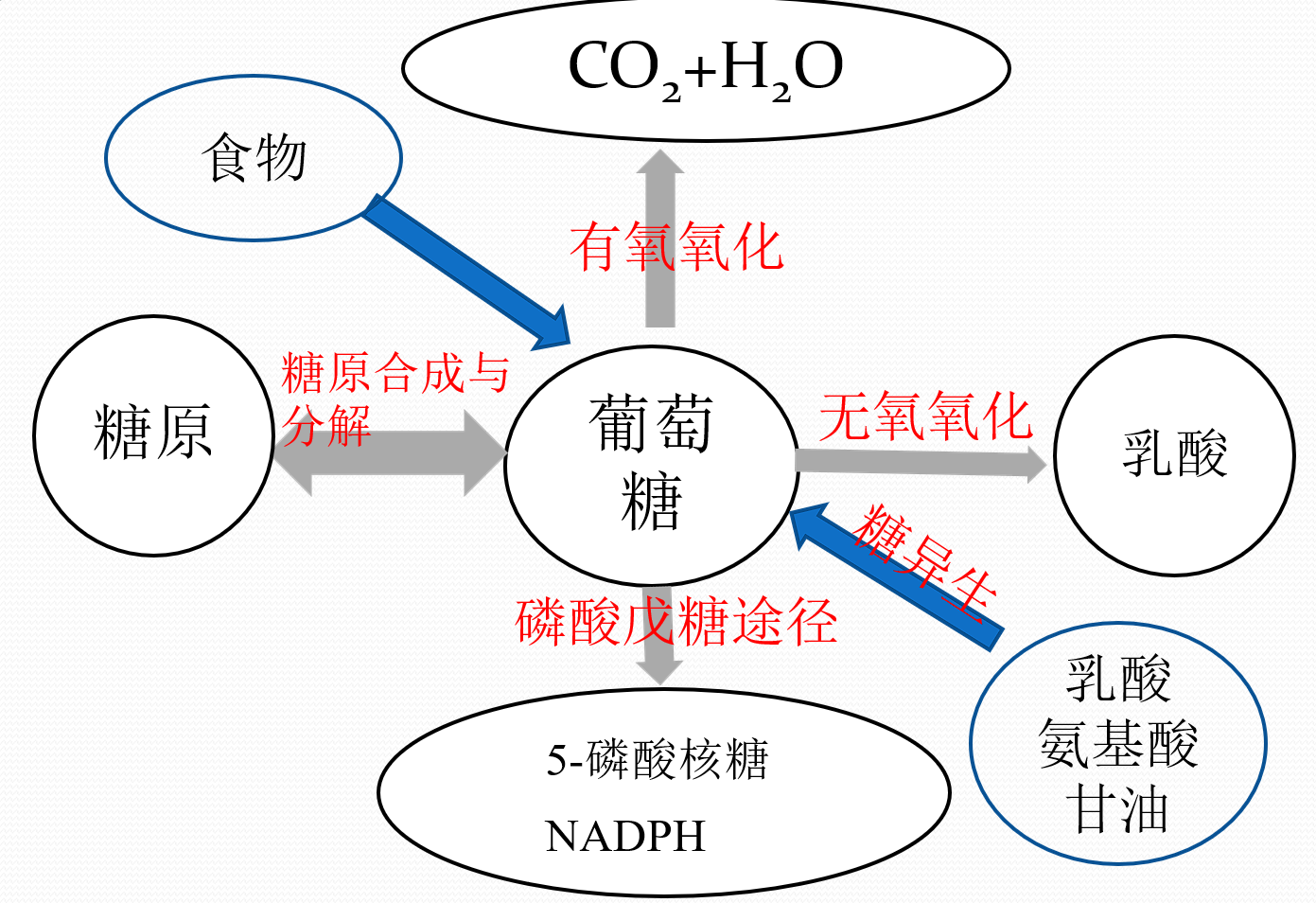 动物体内:葡萄糖(糖的运输形式,血糖主要成分)和糖原(糖的储存形式)