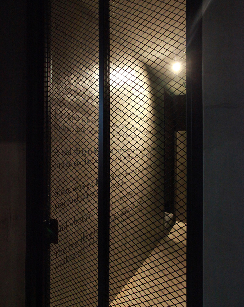 庭院内的东厢房,采光良好,层高较高,设计师将其定义为现在空间。这里主要是作为下午茶使用,也兼具餐厅的功能。午后倾斜照进来的阳光,暴露的顶部木作结构,水泥墙面和金属地面,再加上悬浮于空中的白色明信片装置,整个空间放松随意。如果说刚才的“过去”空间可能有一点点小小的忧郁情绪,那这个“现在”空间则是使人体会一种活在当下的平和愉悦。夜晚,静静的伫立在院中,环顾四周,透过玻璃,人们在高低不同的几个空间内,同时活动的情景一览无余,好似一场浸入式话剧。恍惚间,似真的跌入了时光隧道。