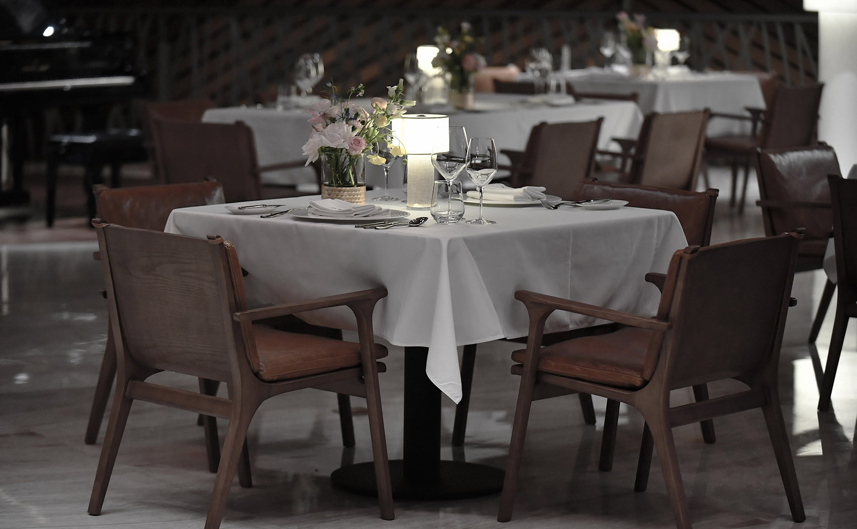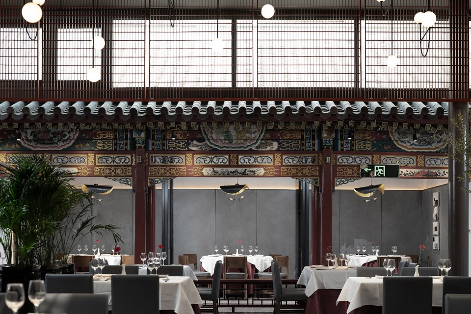 庭院成为开放性的用餐空间,初次踏入,美仑美奂。惊叹于传统雕廊画柱的精致细节,也惊叹于设计师对于尺度的把控,一切平衡得恰到好处。