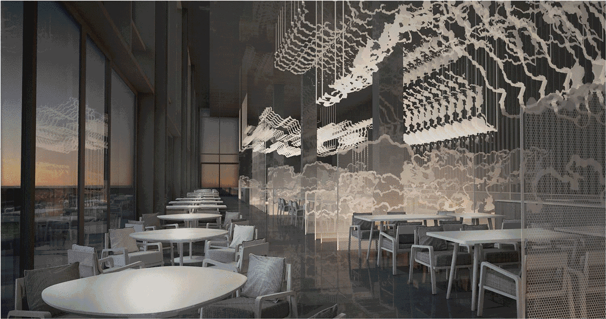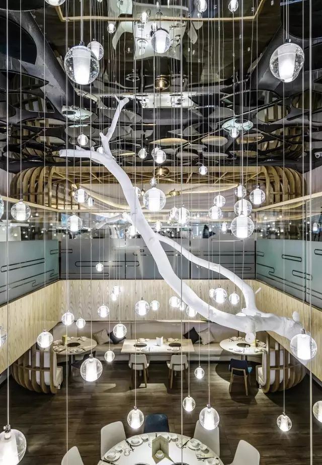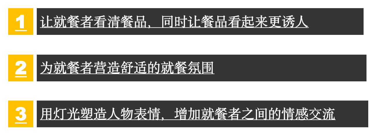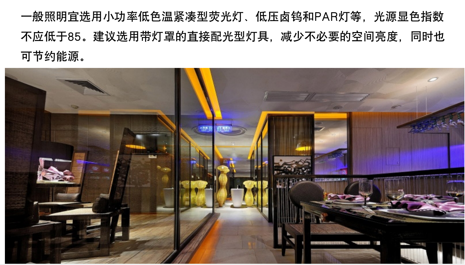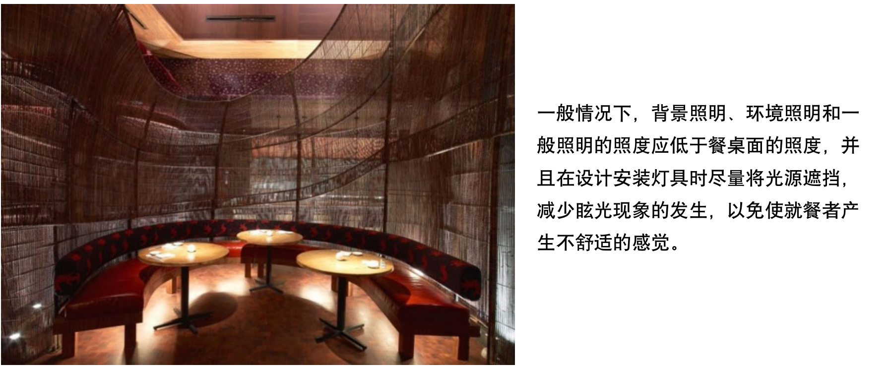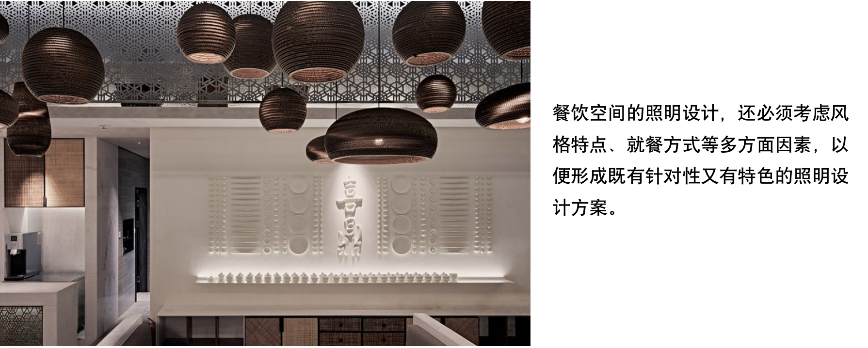 如吊灯/筒灯/射灯等提供餐厅整体照度