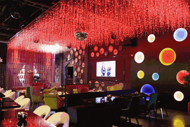 霓虹灯照明:霓虹灯作为运用最广泛的照明设施,它的优势是可以根据电流变化,呈现出不同的色彩和效果等,非常吸引眼球。霓虹灯在酒吧外多用来显示酒吧店面的整体外轮廓和组成各种图案、标志与字体。