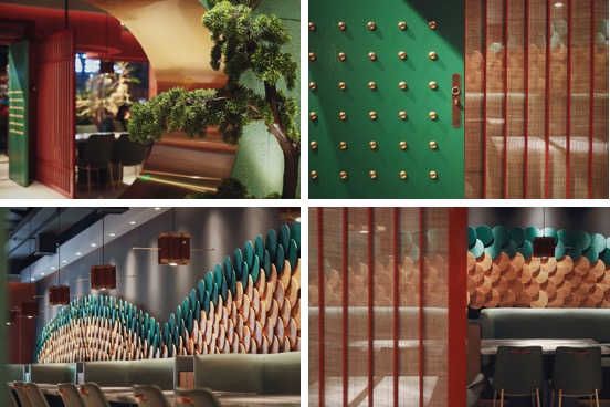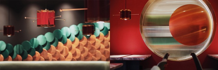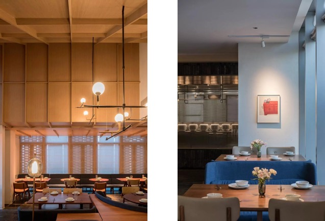 中式餐厅的照明设计应在保证环境照明的同时,更加强调不同就餐区域进行局部重点照明。进行重点照明的方法有两种。