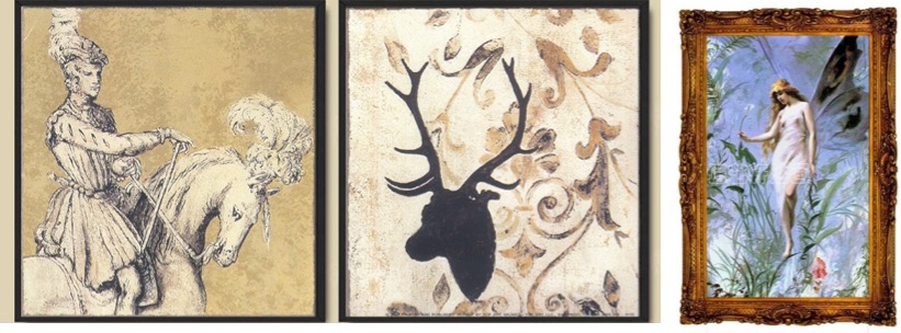 (2)西洋绘画。西洋绘画包括油画和水彩画等。油画无论大小常配以西式画框,进一步增强西式餐厅的气氛;而水彩画则较少配雕刻精细的西式画框,更多的是简洁的木框与精细的金属框。