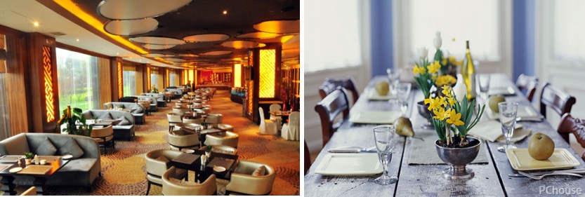 就餐单元常以2~6人为主,餐桌为矩形,餐桌上常以美丽的鲜花和精致的烛具对台面进行点缀。另外淡雅的色彩、柔和的光线、洁白的桌布、华贵的线脚、精致的餐具加上安宁的氛围、高雅的举止等共同构成了西式餐厅的特色。