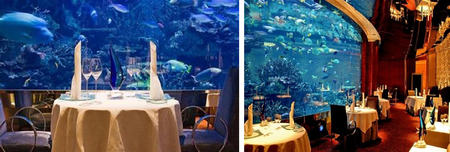 四维设计突出的是空间的时代性和流动性。餐饮空间设计需要顺应时代的特点,随着人们生活水平、风俗习惯、社会状况及文化环境等因素变迁而不断标新立异,时刻走在时代的前沿。还应具有流动性,即在餐饮空间中运用运动中的物体或形象,不断改变处于静止状态的空间,形成动感景象。流动性设计能打破餐饮空间内拘谨呆板的静态格局,增强空间的活力与情致,活跃气氛,增加用餐欲望。餐饮空间的的动态设计可以体现在多个方面,例如餐馆内美妙的喷泉、顾客在卖场中的流动、不断播送各种菜品信息的电子显示屏以及旋律优美的背景音乐等。
