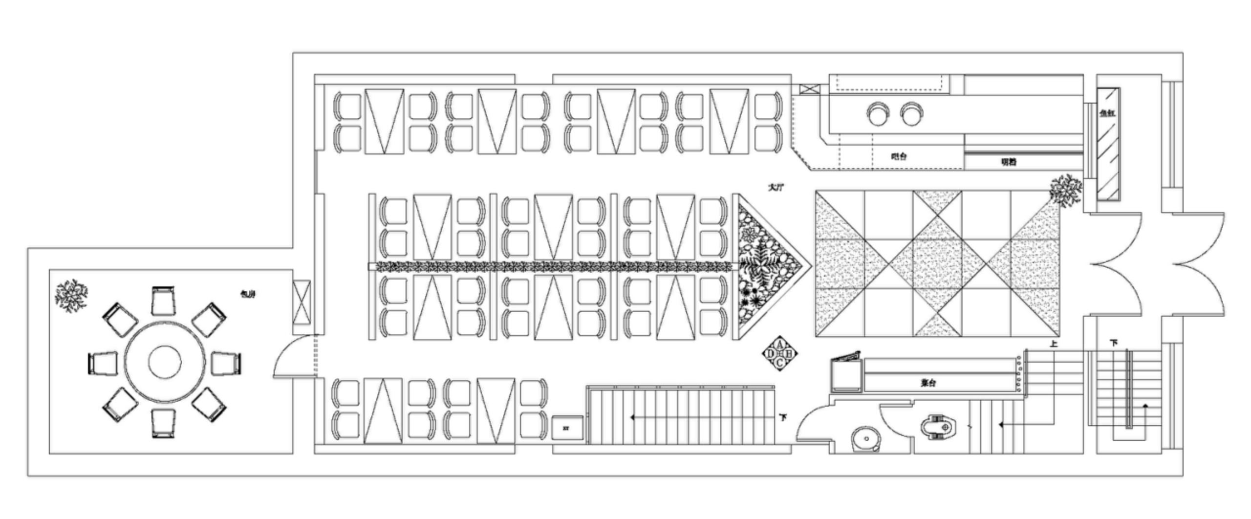 餐馆设计除了要注重顾客的需要以外,还必须考虑如何方便服务与管理。就餐厅而言,产品及服务的生产、销售及消费基本上是在同一时间,并且是在同一场所发生的,顾客动线与员工动线紧密联系,无法割舍。所以,在考虑顾客的同时,也应同时考虑如何尽可能的方便员工及管理者。