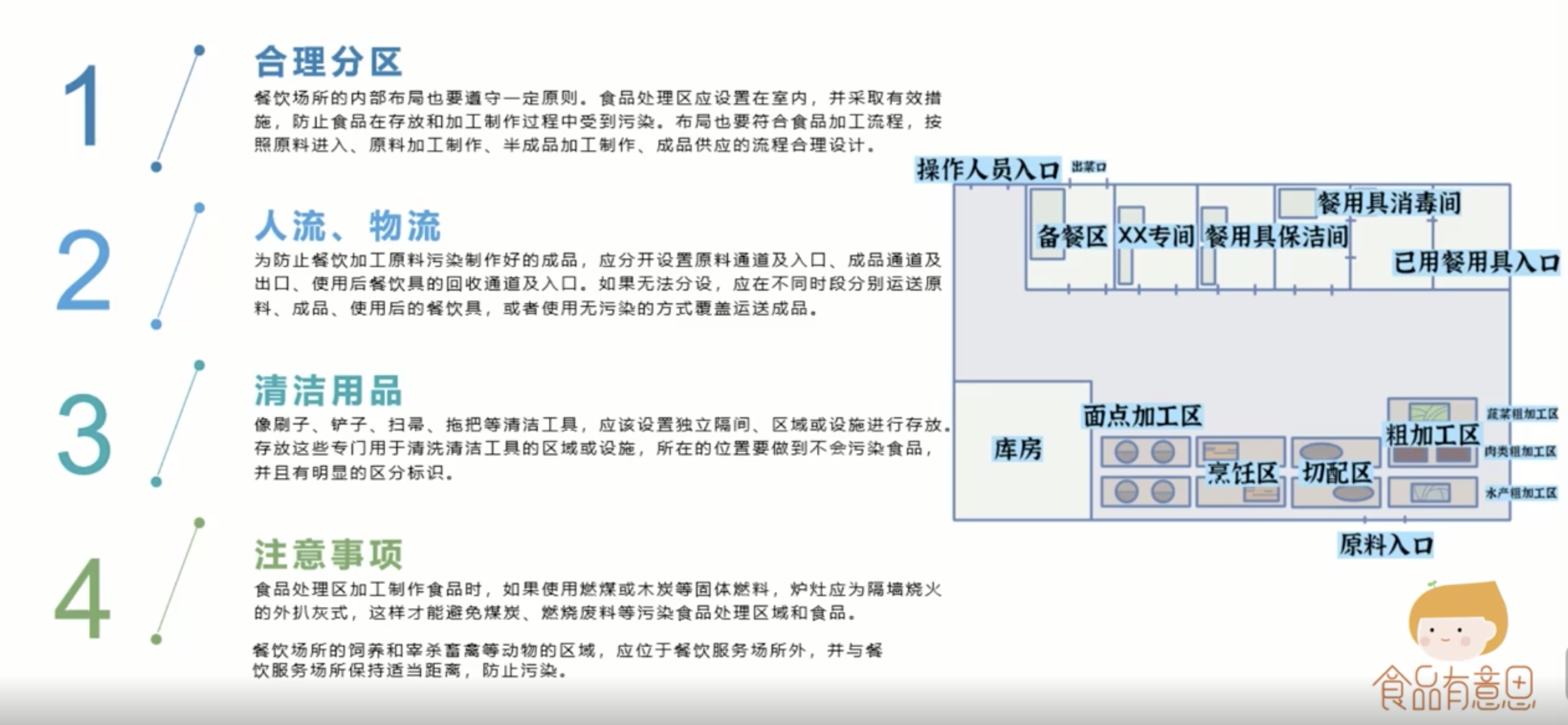 1、合理分区 2、人流、物流 3、清洁用品 4、注意事项