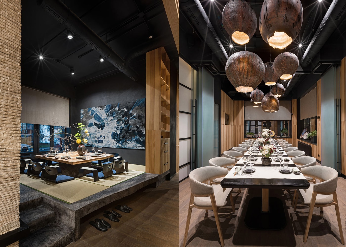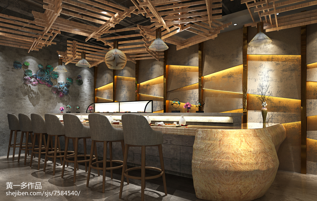 每个空间形态组合的形式特点、空间关系与环境反省都有其基本点。在餐饮空间设计中,比较常见的组合形式有集中式组合、线式组合、放射式组合、组团式组合、网络式组合等。