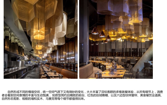 自助型餐厅设计是由宾客自行挑选、拿取或者自烹字食的一种就餐形式,餐台旁需要留足够的流动选择空间,让人有迂回走动的余地,避免客人排队取食,就餐的桌椅不可安排的过于紧密,以便于客人取用食物时在餐厅走动,尽可能地为客人提供多种菜品的同时,也要营造主题氛围,使环境、服务、餐具、灯光、摆放菜品等每一个环境和每一个小细节都应与主题想匹配。