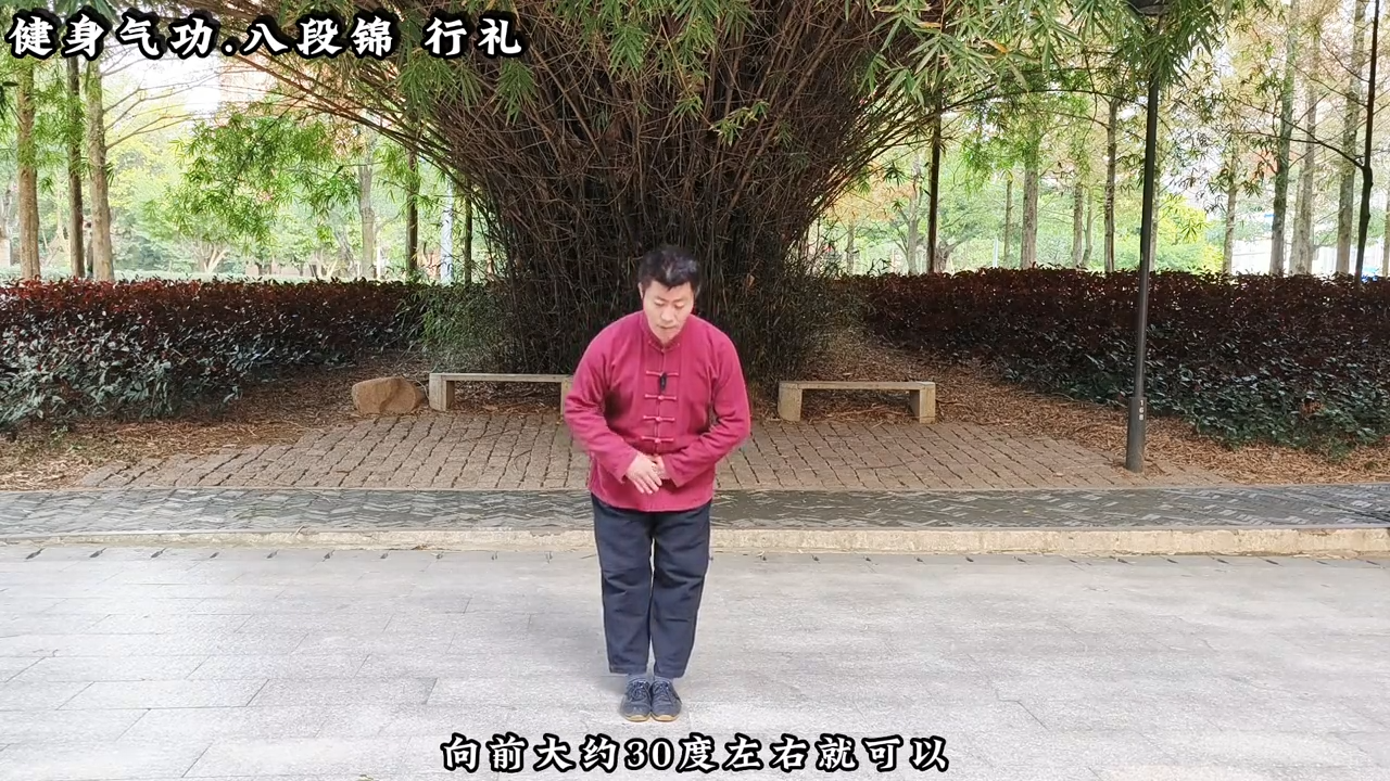 八段锦中的“鞠躬礼”是一个表示尊重和谦虚的动作,通常在练习开始和结束时使用。以下是八段锦鞠躬礼的动作要领: