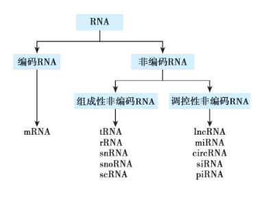 一、信使RNA(mRNA):信使 RNA,细胞内含量较少(5%),但种类最多的 RNA(>10,000)。mRNA 传递来自 DNA 的遗传信息,指导蛋白质合成。