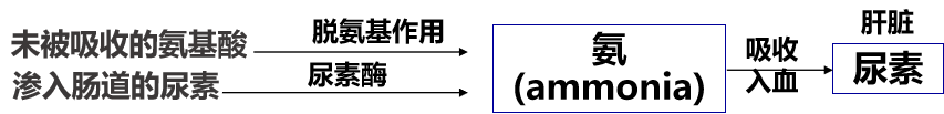 未被消化的蛋白质及未被吸收的消化产物在结肠下部受到肠道细菌的分解。产物大多有害,如胺、氨、苯酚、吲哚等。大部分随粪便排出,小部分吸收经肝脏代谢消除毒性,故不会发生中毒现象。