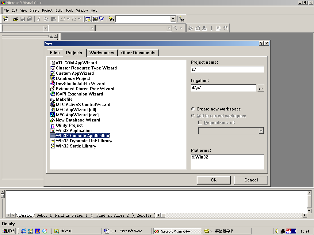 打开VC++开发软件,从[文件]菜单中点击[新建]菜单项,出现如图所示: