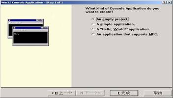 (2) 当确定后会出现要你选择工程类型的对话框,如图所示:请选择一个空的工程,即第一个选项。