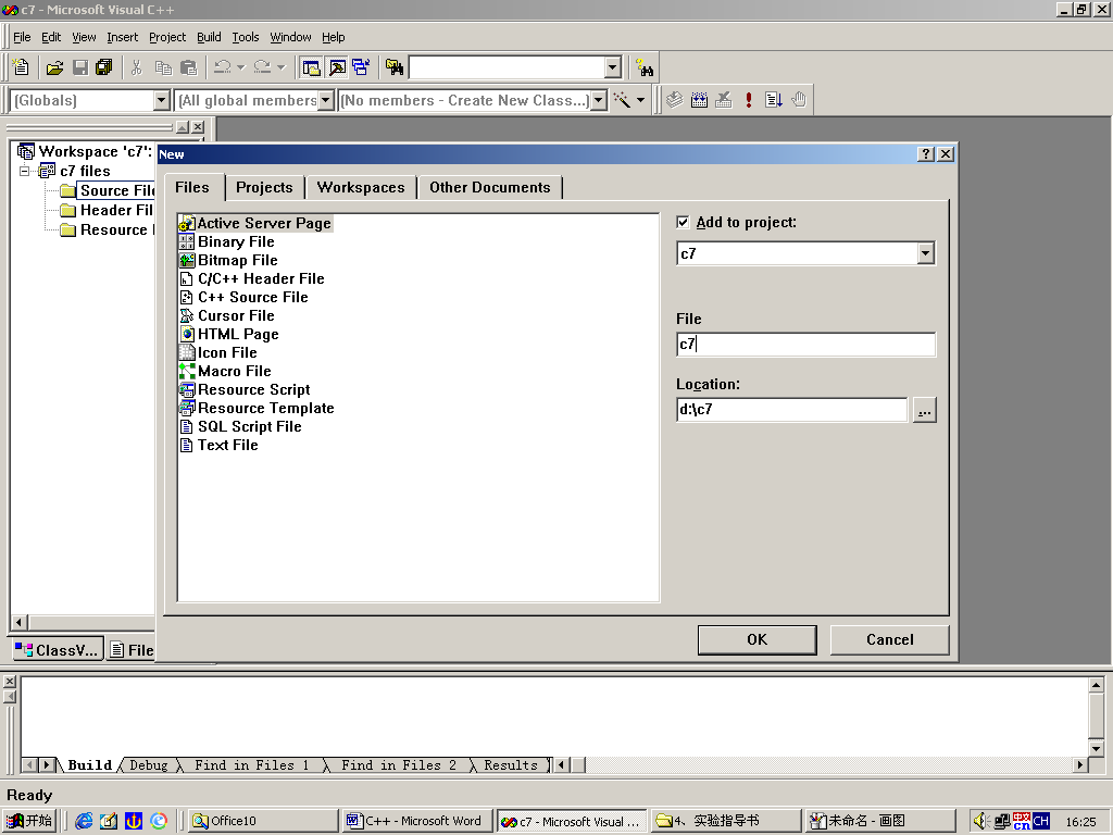 (3) 当单击确定后,工程建立完毕,接下来建立程序源文件,请再单击[文件]菜单下的[新建]出现原先出现的对话框,请选择 “文件”选项卡中的c++ source file选项,并取名,如c8