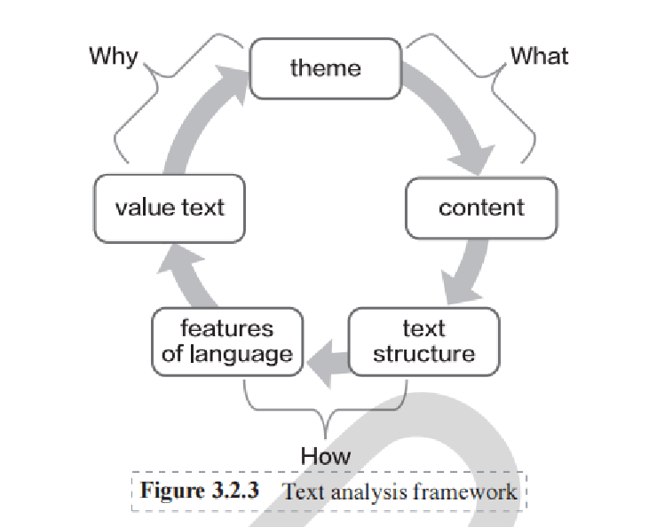 Specifically, a text can be analyzed from three broad dimensions and five related sub-dimensions (Figure 3.2.3): What (theme and content), How(text structure and features of language), and Why (theme and value).