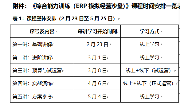 附件:《综合能力训练(ERP模拟经营沙盘)》课程时间安排一览表