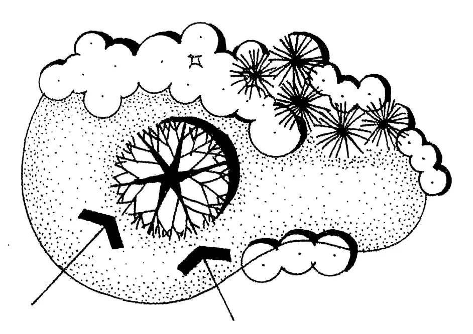 第一类是庇荫与观赏结合起来的孤立树,第二类是单纯为了构图艺术上需要的孤立树。