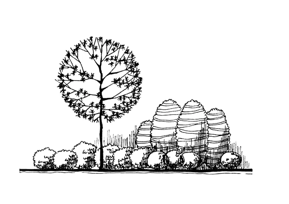 十五株以下的树丛,树种最好也不要超过五种,如果外观很相近的树木,可以多用几种。