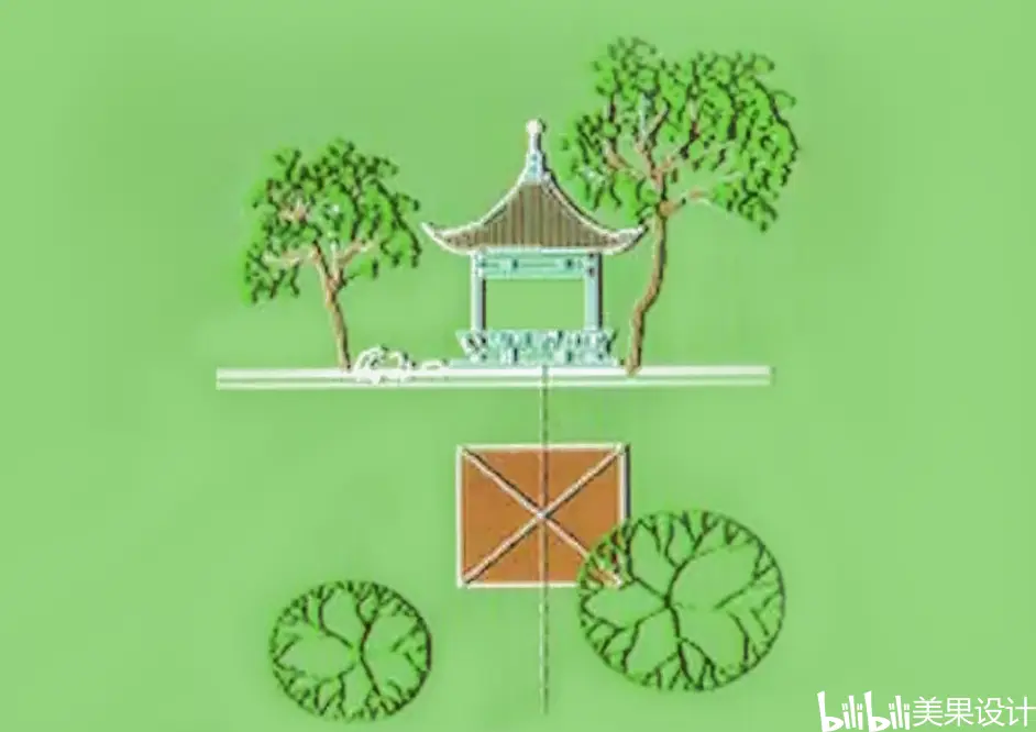 用2株树按照一定的轴线关系作相对称或均衡的种植方式,主要用于强调公园、道路和广场的路口,同时结合避荫、休息等功能,在空间构图上起配置作用。