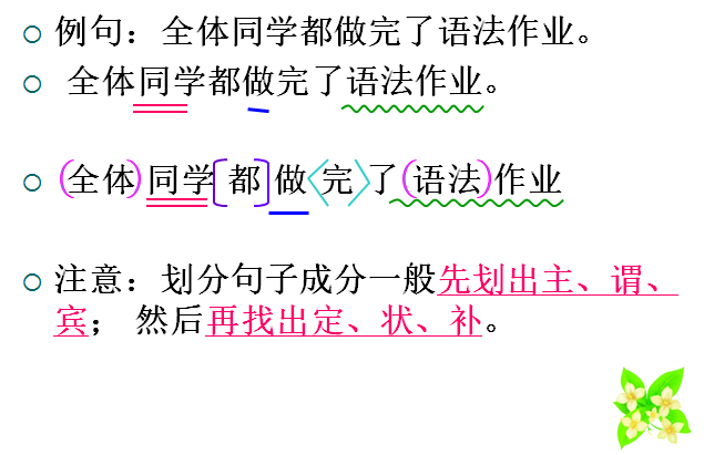 学习目标:掌握句子成分分析法的标识、分析程序和优缺点