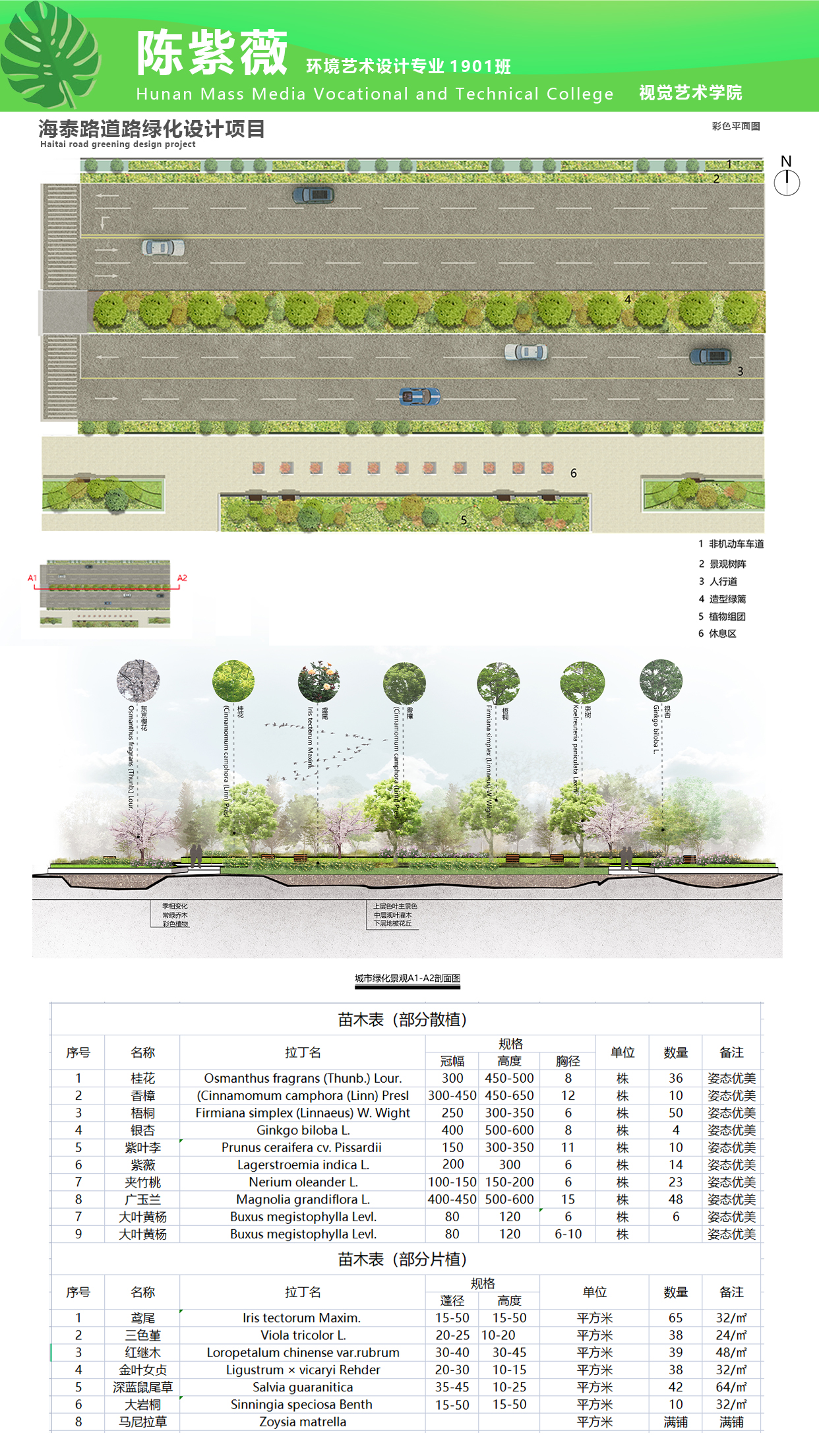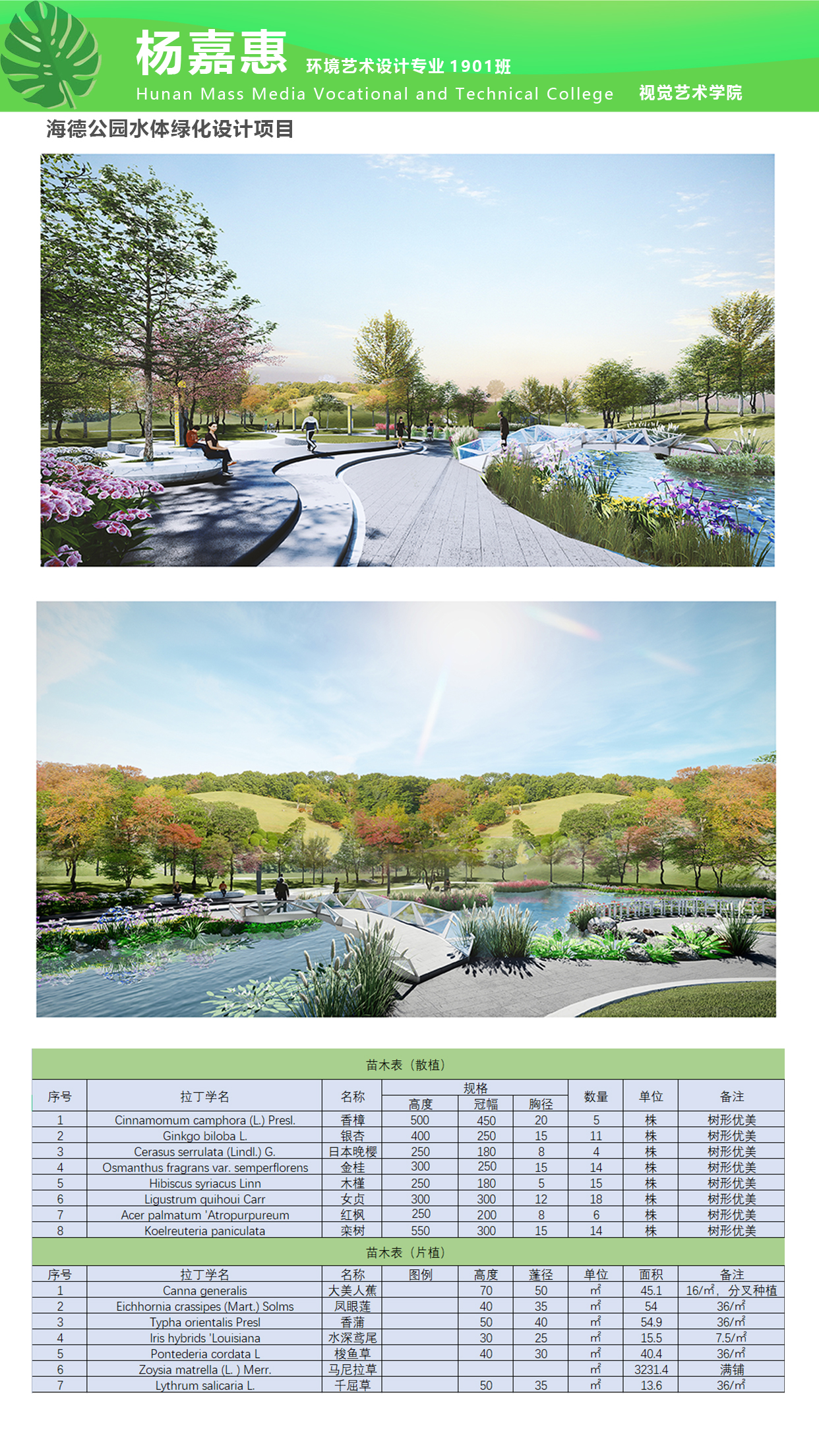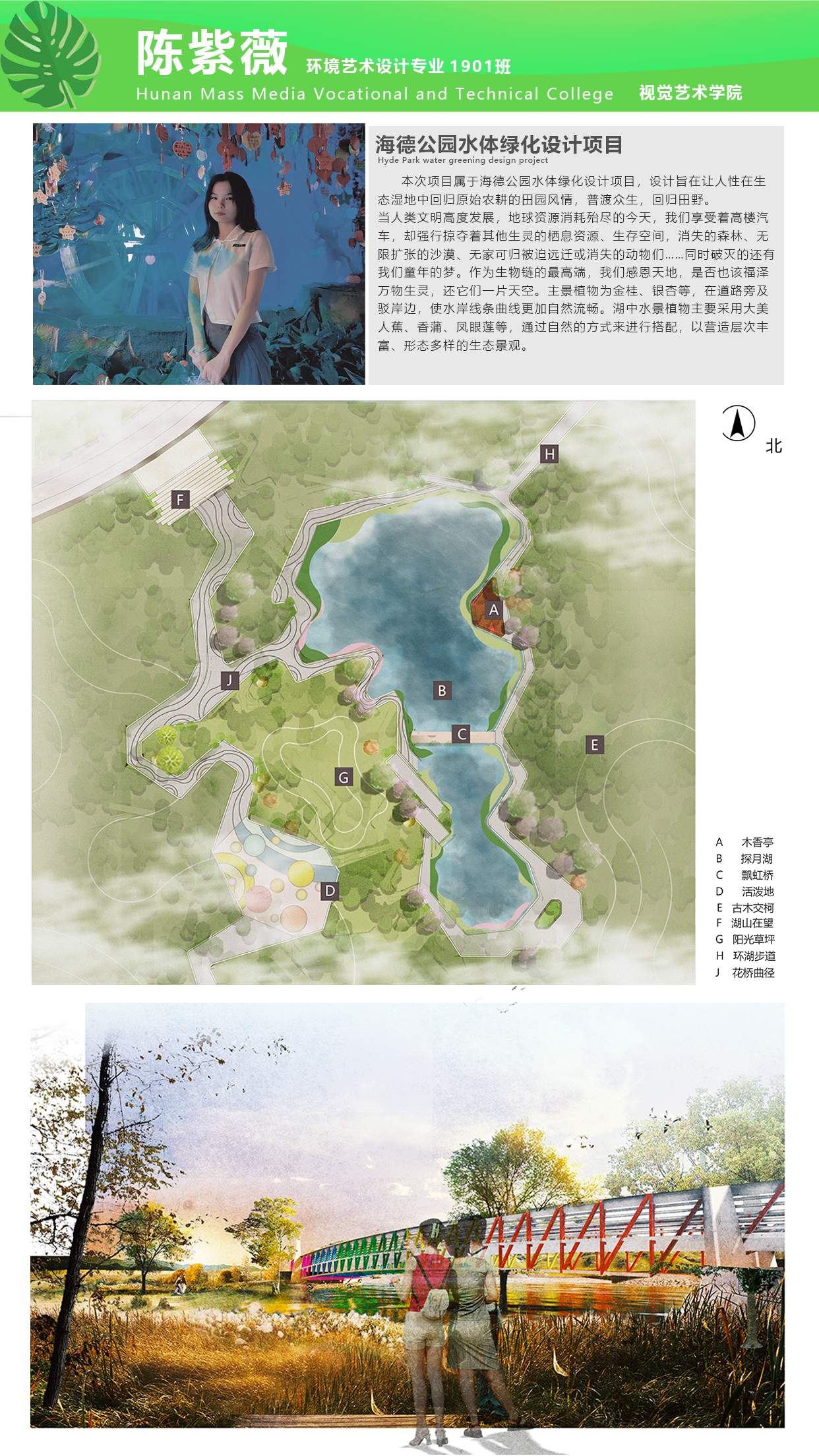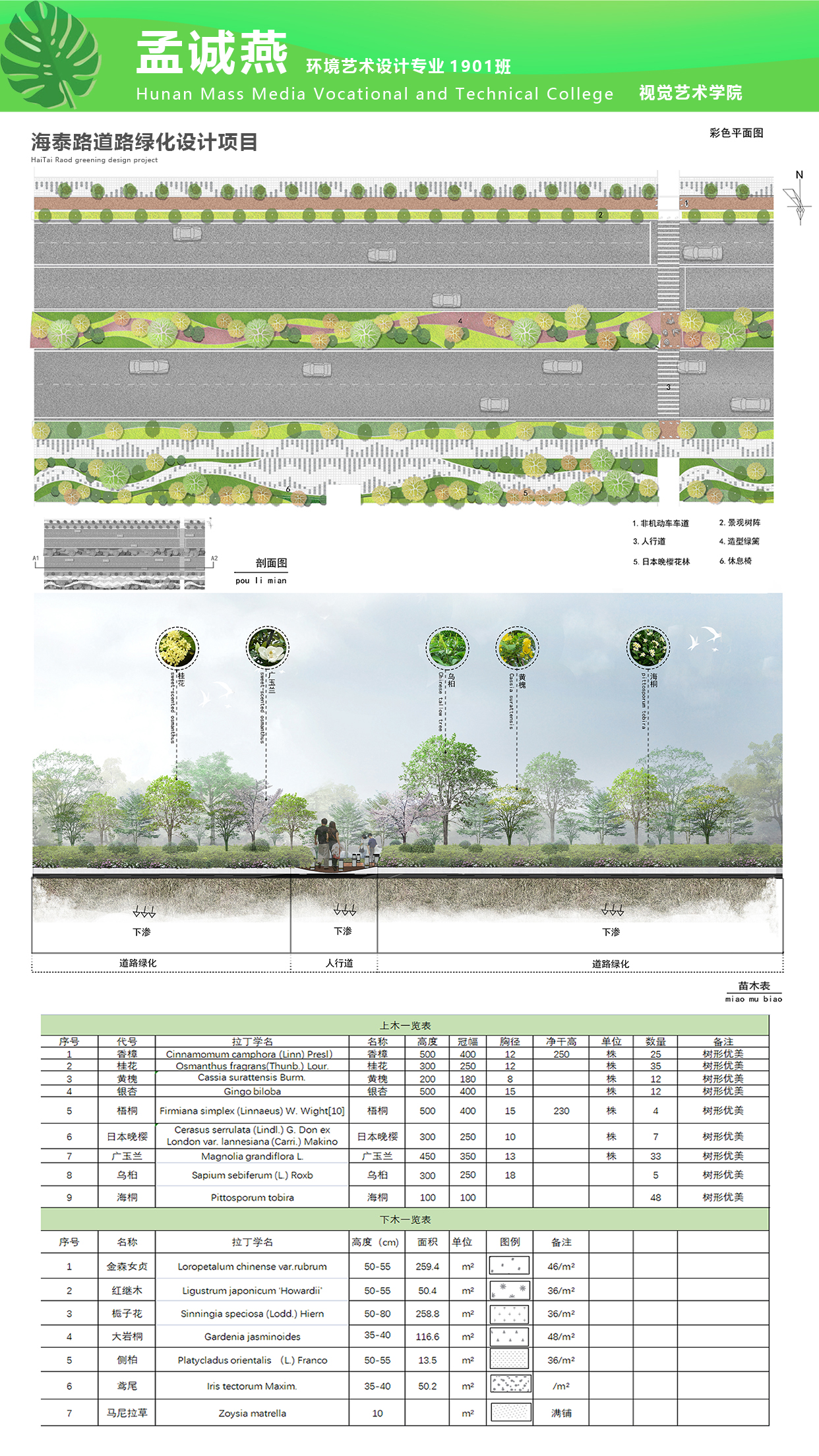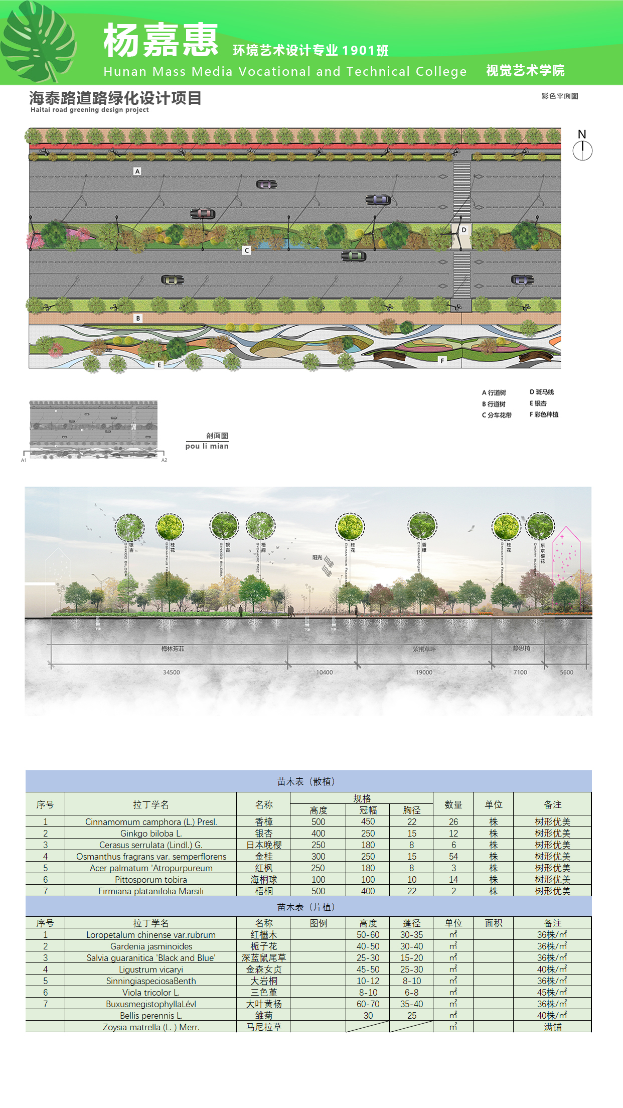 2021年上学期,环境艺术设计专业1901班、1902班展开了《植物配置》课程的学习,通过线上线下混合式教学模式的初探,同学们分别完成了海德湿地公园绿化设计项目、海泰路道路绿化设计项目两项校企合作项目,同时还完成了物流园种植池设计,庭院花镜设计等课程作业。他(她)们对待作品精益求精,反复打磨,在课程结束期间也收获了大批量优秀的设计作品。同时,在课程教学中有机融入了共建“绿水青山”应是环艺人的责任与使命课程思政,开展了维护校园植被劳动教育的实践活动。由于新冠疫情,今天在线上展示同学们优秀的课程作品以资鼓励,或许还存在一些不足,但这却是作为未来环境艺术设计的学生们用心耕耘的成果,是他(她)们辛勤劳动的见证、是他(她们美好青春的回忆……,在此真诚的恳请您提出宝贵的建议,并表示、诚挚的感谢。