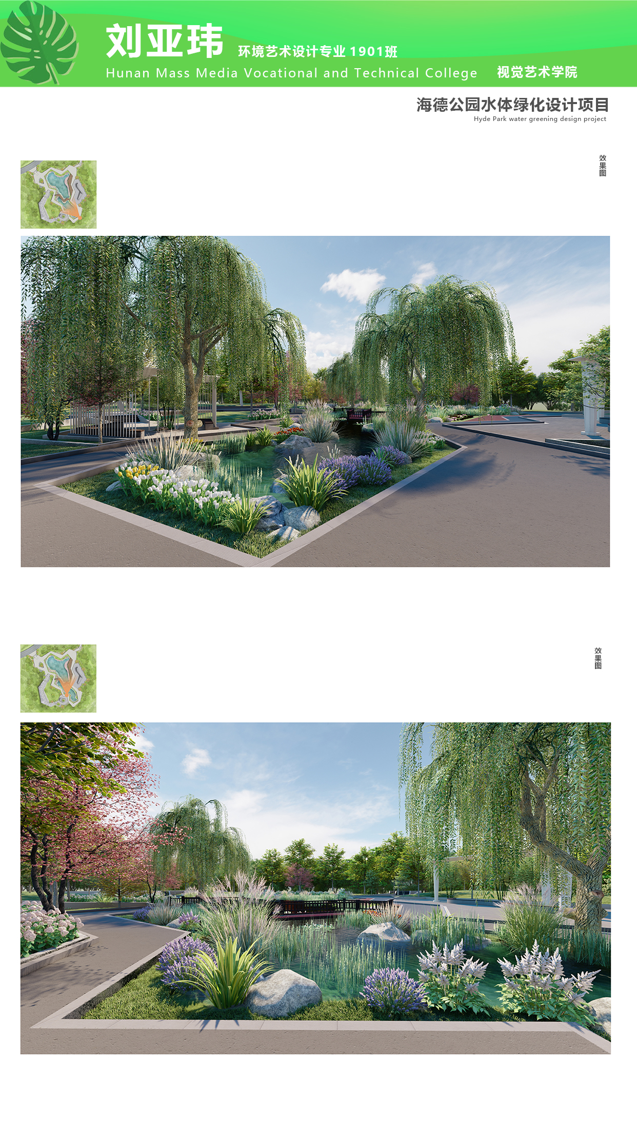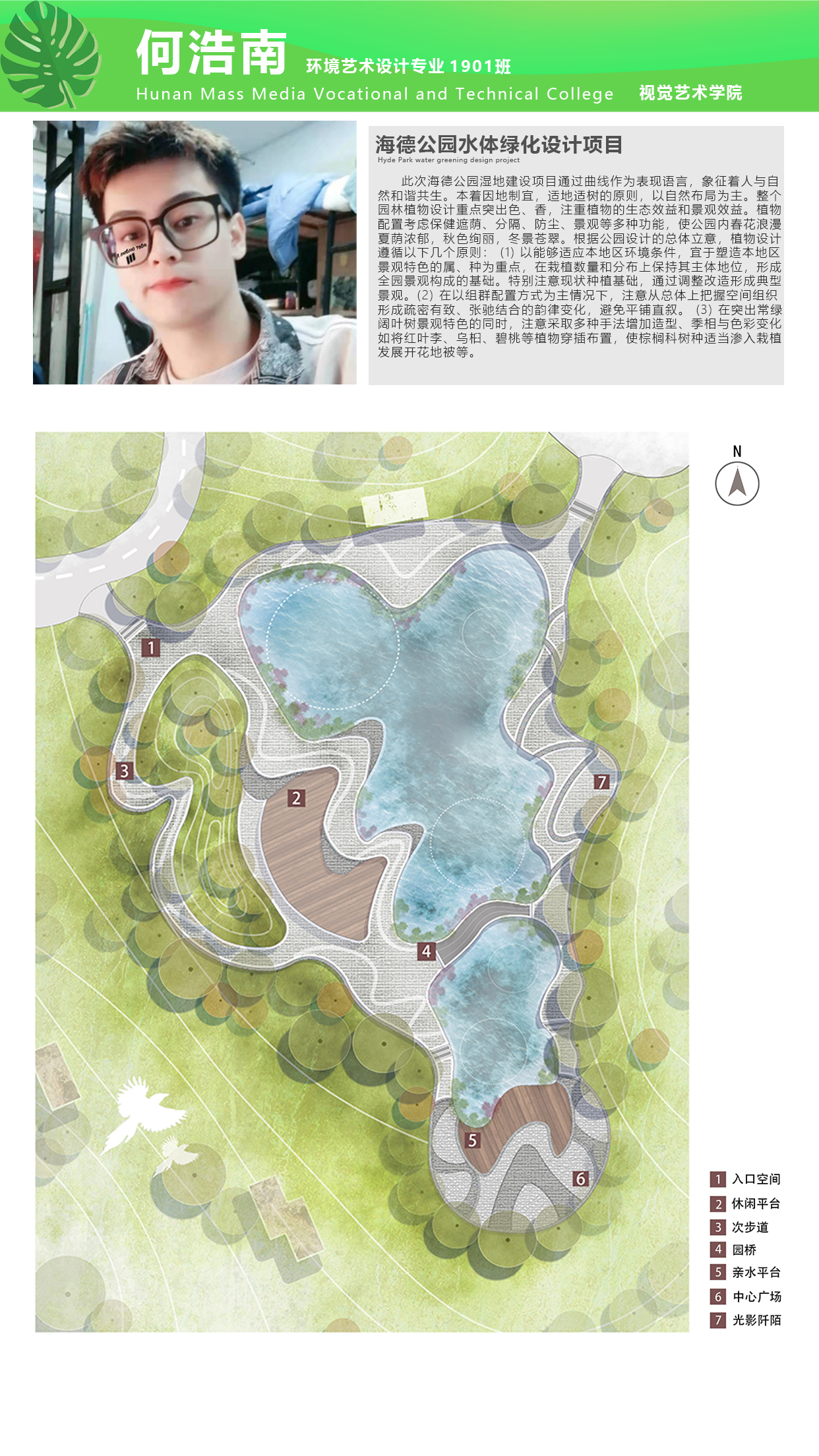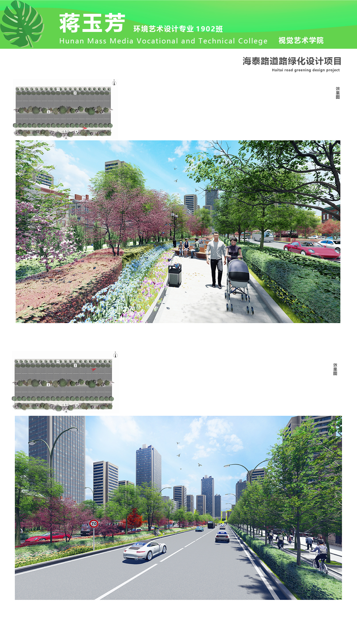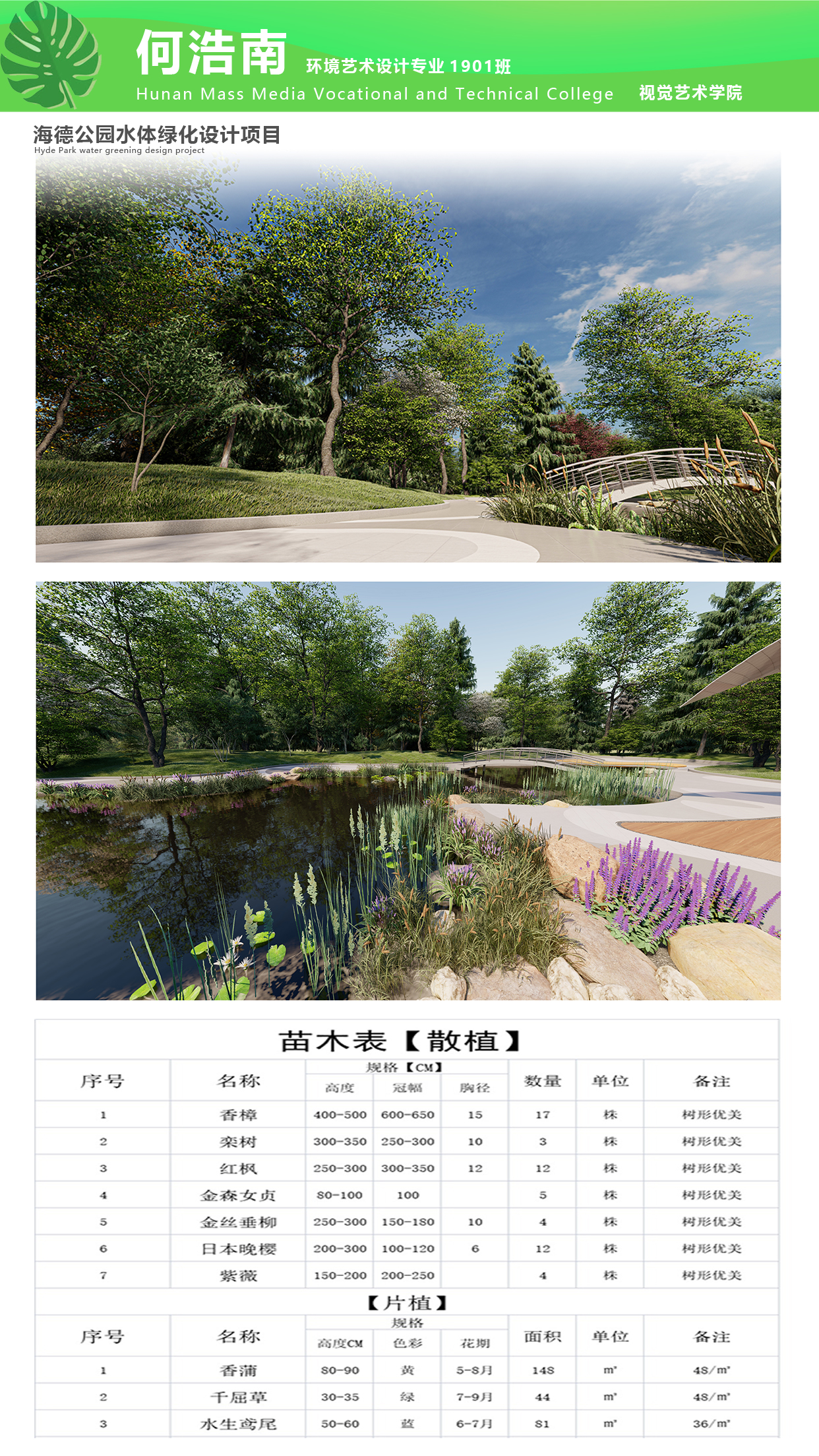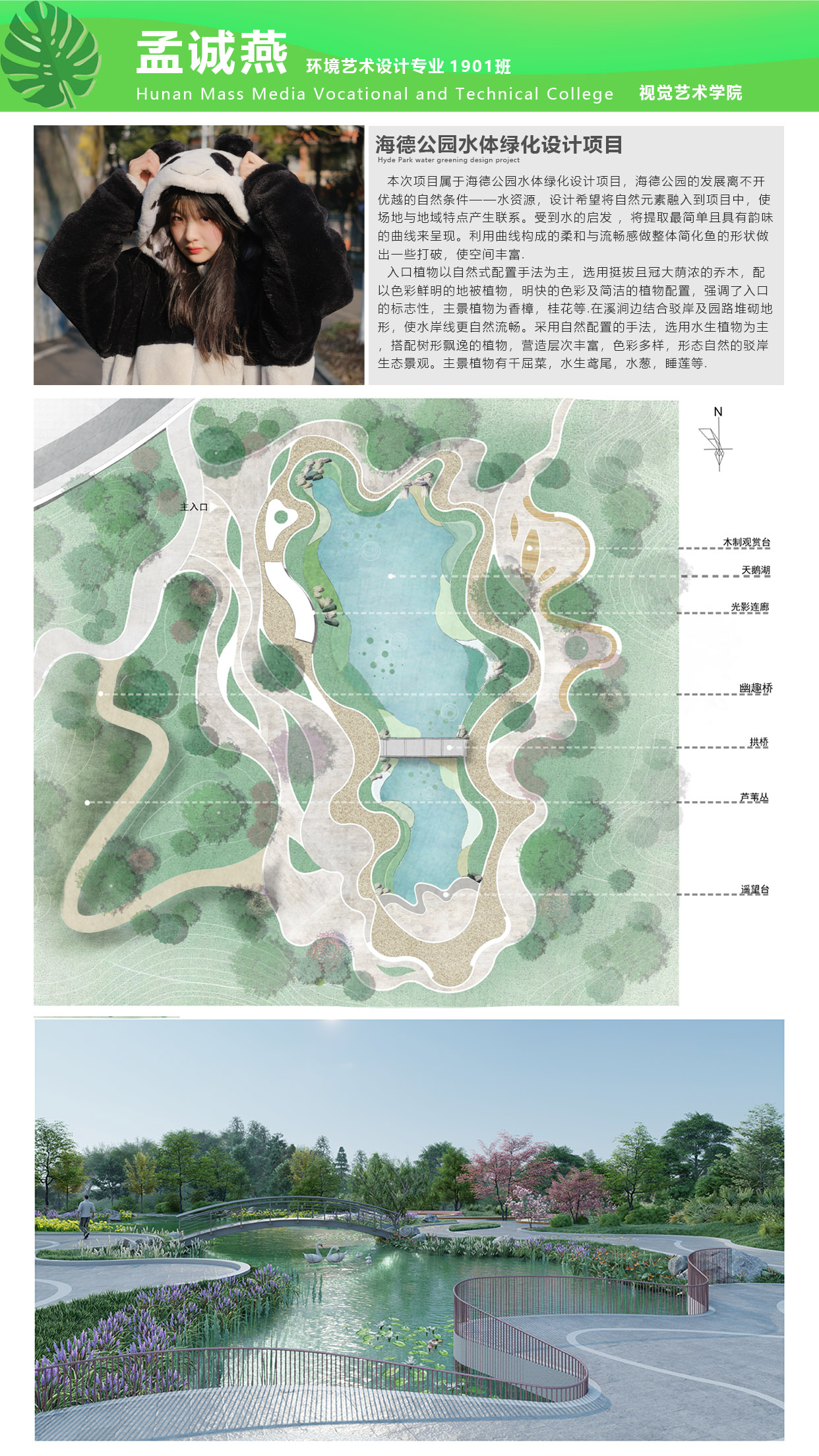 2021年上学期,环境艺术设计专业1901班、1902班展开了《植物配置》课程的学习,通过线上线下混合式教学模式的初探,同学们分别完成了海德湿地公园绿化设计项目、海泰路道路绿化设计项目两项校企合作项目,同时还完成了物流园种植池设计,庭院花镜设计等课程作业。他(她)们对待作品精益求精,反复打磨,在课程结束期间也收获了大批量优秀的设计作品。同时,在课程教学中有机融入了共建“绿水青山”应是环艺人的责任与使命课程思政,开展了维护校园植被劳动教育的实践活动。由于新冠疫情,今天在线上展示同学们优秀的课程作品以资鼓励,或许还存在一些不足,但这却是作为未来环境艺术设计的学生们用心耕耘的成果,是他(她)们辛勤劳动的见证、是他(她们美好青春的回忆……,在此真诚的恳请您提出宝贵的建议,并表示、诚挚的感谢。