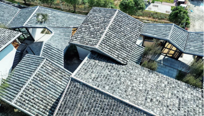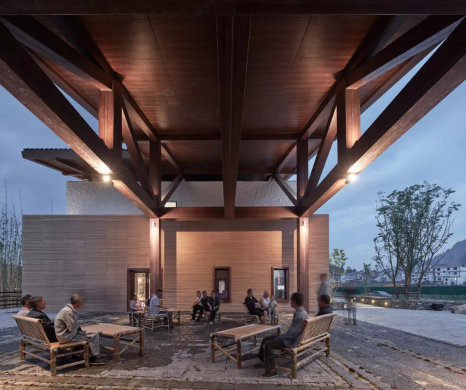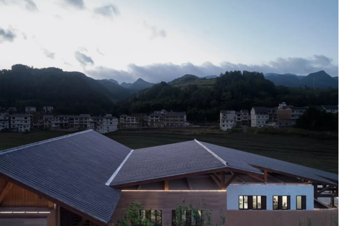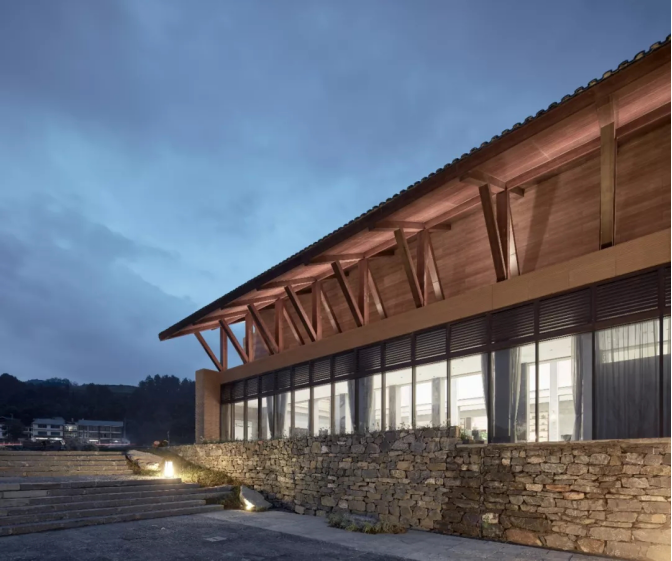 兴村落之致汲取本土化的构造元素,于新式于传统材料融合间建构村落的工致。
