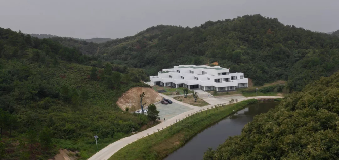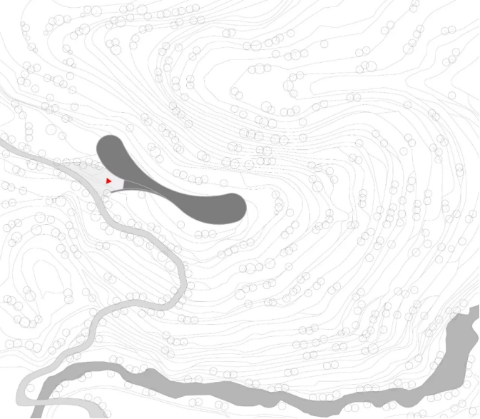 面对裸露的,高达15米的边坡,设计团队提出用建筑进行生态环境修补的想法:将建筑退让至场地边界,与开挖的山体衔接。建筑从场地中央位置挪开,既创造了开阔的户外空间,又使建筑成为自然山体的延伸,由此得出建筑面向西南,背向东北,依山面水而建的基本格局。