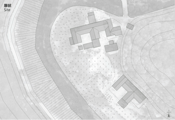 改造前的院落独立、封闭,被树林稻田所包围。为增强场地的公共性,基于聚会、用餐、住宿等业态,进行如下操作:保留民居主要起居空间;拆除多余构筑物;增加多功能空间;组织新的路径连接几处院落,将几处民居整合为一簇半围合的聚落。