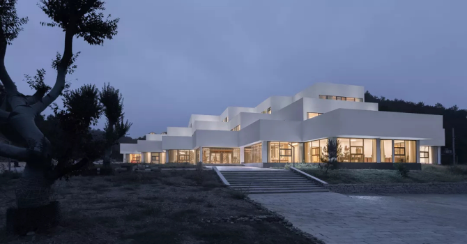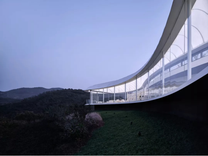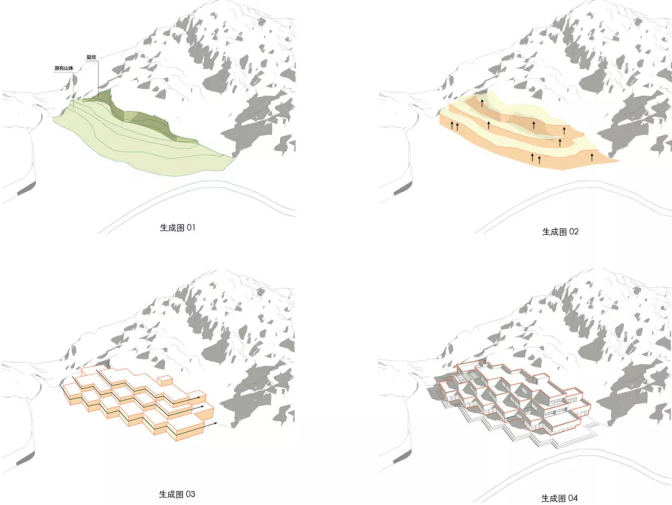 在此基础上,设计团队提出“折叠的水平线”的设计理念:建筑总体呈退台式组织,暗示了建筑作为另类等高线与山体的关系,建筑作为自然环境的一种延续,但又不仅限于对自然的模仿和拟态。
