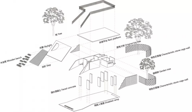 整个设计从建筑到景观都是对原有场地最轻的干预,体现了乡村建设过程中对周边生态环境的精心呵护和尊重。这也是乡村微介入理念的一次在地尝试,希望通过微介入点位的轻微介入,实现整个乡村的全面复兴。