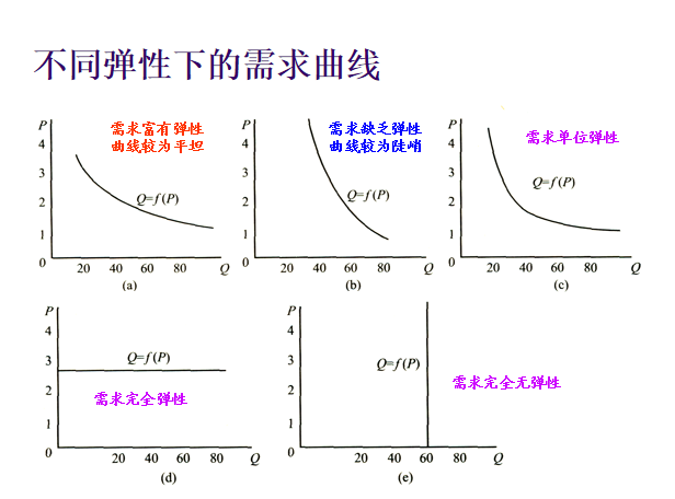 不同商品的需求价格弹性也不相同,其大小与需求曲线的陡峭程度有关。需求曲线越陡峭,该商品的需求价格弹性就越小。