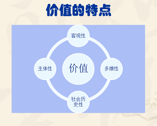 第四,价值的社会历史性。主体和客体的不断变化决定了价值的社会历史性特点。价值关系中的主体是在一定社会关系中从事实践的具体的人,随着实践和历史的发展,主体和客体以及主客体之间的关系发生变化,导致人们对客体价值的判断也会发生改变。