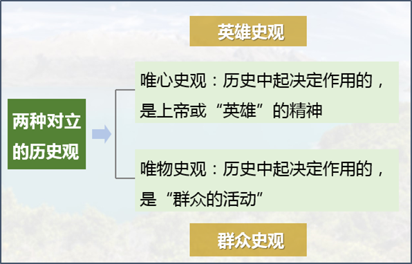我们还是首先来看层级,刚刚宿命论有三个层级,现在唯意志论只有两个层级,少掉一个,少掉哪一个呢?我们来看这两个层级是什么?第一个层级,历史是由少数天才人物按照自己的意志,那唯意志论嘛,按照自己的意志创造的。他们就指这些天才人物,可以随心所欲的界定历史的面貌。好的,他第一个层级就是天才人物,实际上就是我们刚刚讲的英雄人物,那么他可以随心所欲的根据自己的意志创造历史;第二个层级人民群众,人民群众不过是盲目的、追随天才人物的、愚昧无知的群氓,这个字在这儿念氓,群氓,群氓什么意思?就是一群愚昧无知的人。第一个层级是天才,第二个层级是人民,那人民怎么描述的呢?盲目的、追随的、愚昧的、无知的群氓,所以我们就会发现,唯意志论的观点也是强调人民群众对历史发展无能为力。那么唯意志论也好,宿命论也好,两个层级也好,三个层级也好,当中都有共同的两个层级,一个是天才或者英雄,一个是人民,并且人民都是无能为力的,对于历史发展不起作用,这就是唯心史观的两种观点。