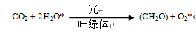(10) 1939年希尔(Robert Hill)用离体叶绿体做实验发现光合作用中释放的氧来自水而不是CO2。后来鲁宾(S. Ruben)和卡门(M.D. Kamen)等用含有18O的水进行植物的光合作用实验,18O出现在所释放的氧气中,进一步肯定了光合作用中所释放的氧来源于水的光裂解。直到此时才形成光合作用的现代概念,用下式表示光合作用的总反应: