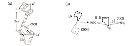 图 5-6 CaM的三维结构(A)和Ca2+·CaM复合体结合到靶酶上(B)(引自潘瑞帜,2002)