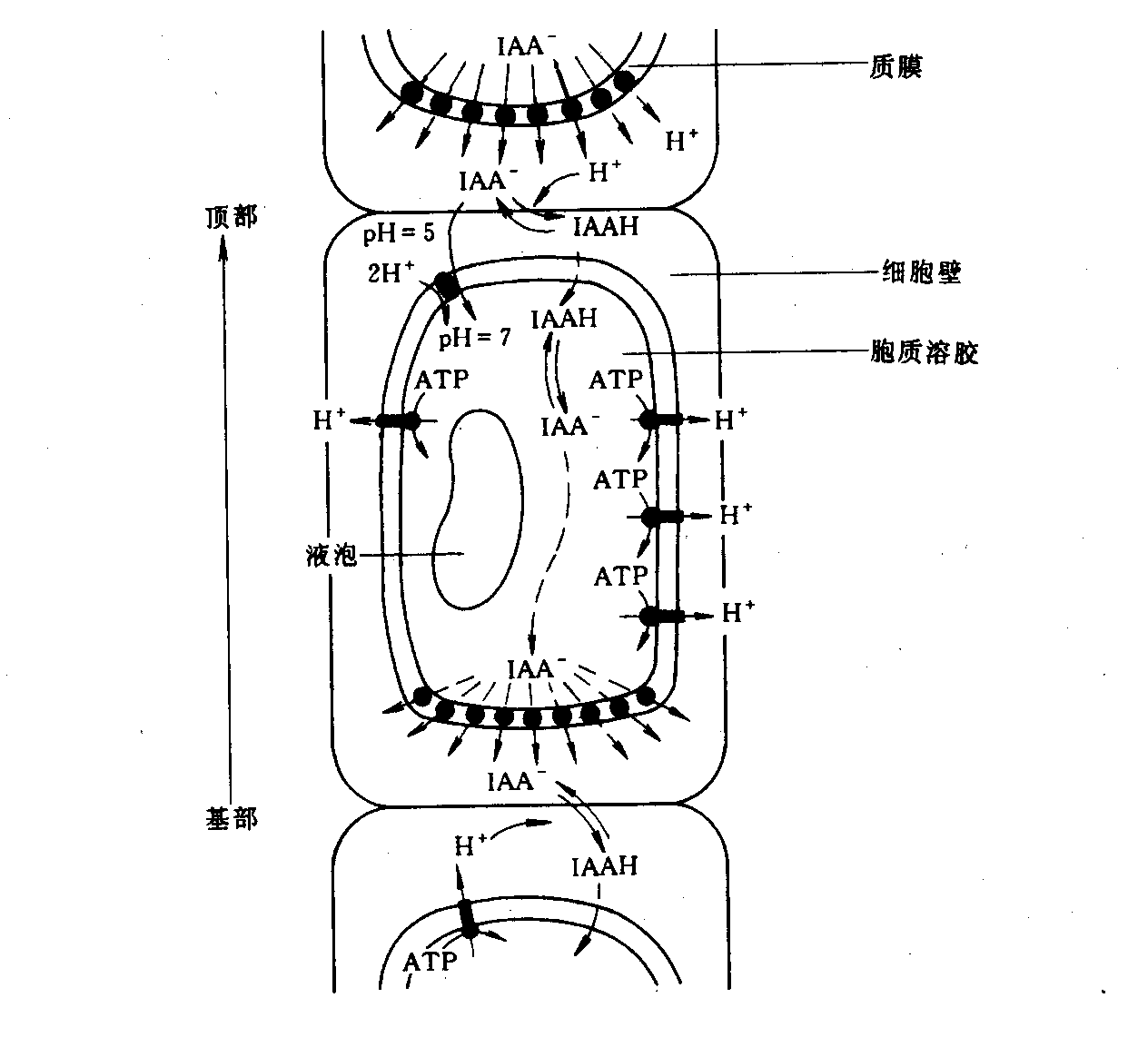图6-5生长素的极性运输(引自李宗霆等,1996)