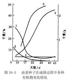 油料种子成熟过程中,温度对含油量和油分性质影响也很大。成熟期适当的低温有利于油脂的积累。在油脂品质上,亚麻种子成熟时昼夜温差大,有利于不饱和脂肪酸的形成。因此,优质的干性油往往来自纬度较高或海拔较高的地区。吉林省农业科学院大豆研究所(1982)的分析表明我国各地的大豆种子的化学成分有很大差别。北方大豆种子含油量高,蛋白质含量较低,南方的则正好相反(表10—1)。
