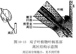 多数植物的叶片在脱落之前已形成离层,但处于潜伏状态。可见离层的形成并不是器官脱落的惟一原因。一般形成离层之后植物器官才脱落。但也有例外,如烟草、禾本科植物的叶片等,根本不形成离层,因而枯萎后的叶子不脱落;花瓣不形成离层也可脱落;有的植物整个叶子在两个部位形成离层(如葡萄的叶子),一是在叶柄基部,二是在近叶基部,整个叶子也分两步脱落,先脱落叶片,后脱落叶柄。