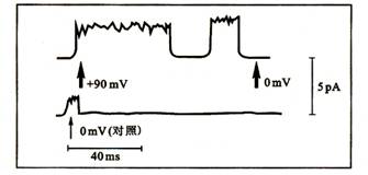 注意:脉冲电流结束前通道有一短暂的关闭与开启。0 mV为对照