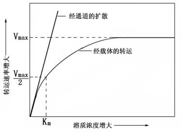膜中的脂质是扩散途径中的主要障碍。脂溶性较好的非极性溶质能够较快地通过膜。O2、CO2、NH3均可以单纯扩散方式穿过膜的脂质双分子层。带电荷的离子不能通过单纯扩散方式通过脂质双分子层,但可以通过通道蛋白等进行扩散转运。