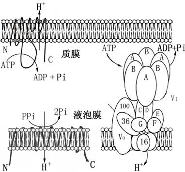 图2-9植物细胞质膜H+-ATP酶(上),液泡膜H+-焦磷酸酶(左下)
