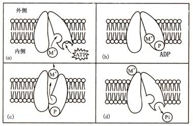 改变,将离子暴露于外侧并释放出去;d.释放Pi,恢复原构象