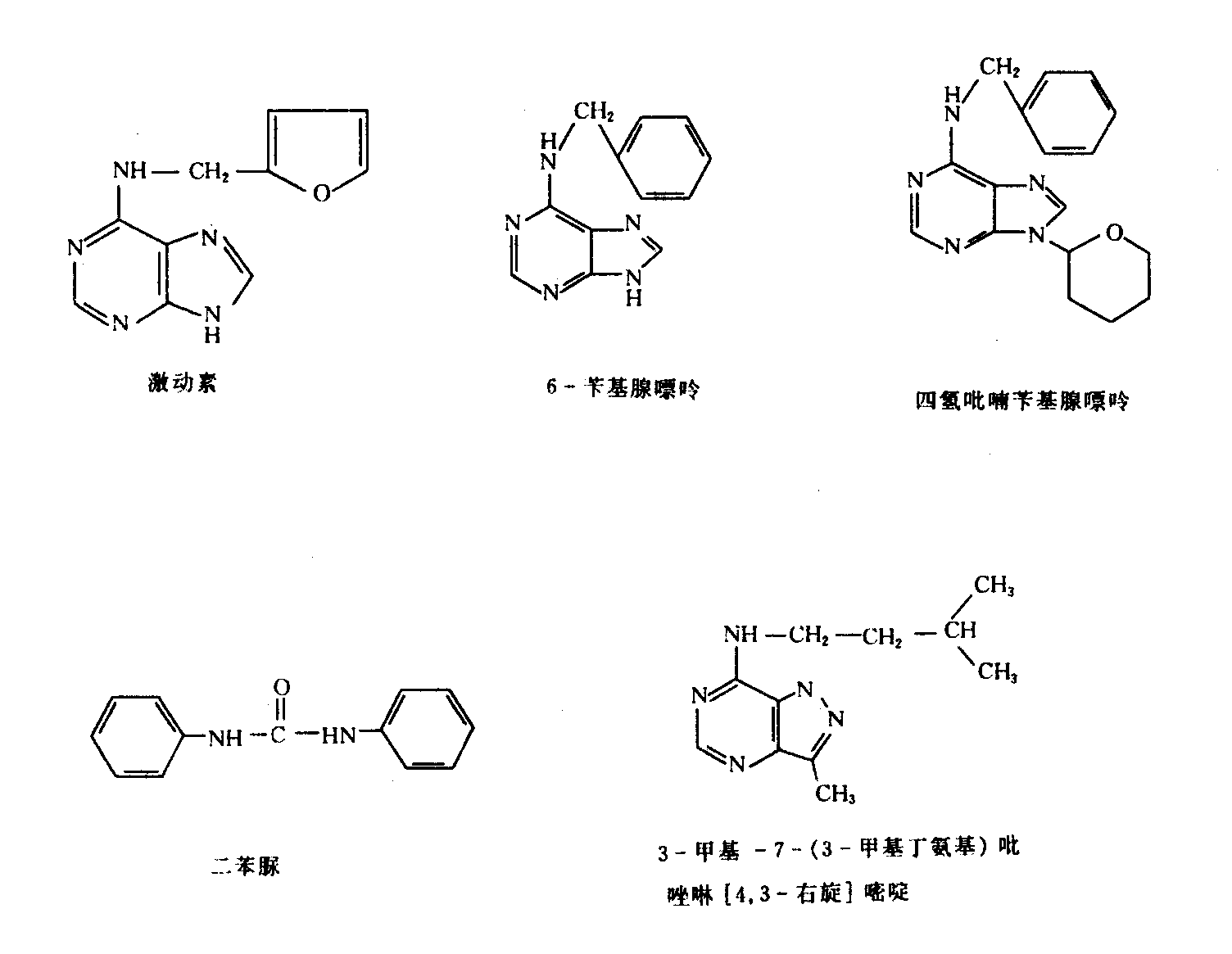 图6-20 几种人工合成的细胞分裂素和细胞分裂素拮抗剂(引自潘瑞炽,2001)