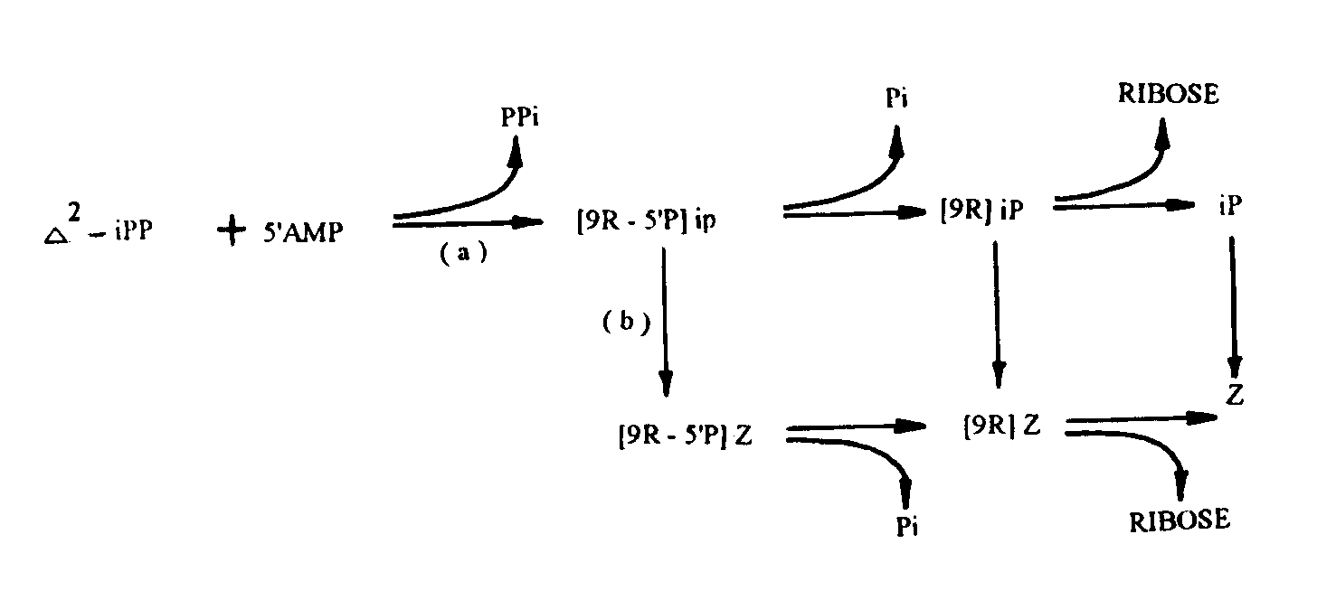 图6-21细胞分裂素的生物合成途径(引自李宗霆等,1996)