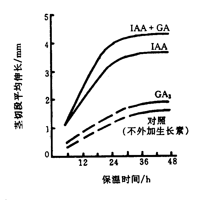 图6-34 生长素和赤霉素对离体豌豆节间切段伸长生长的效应