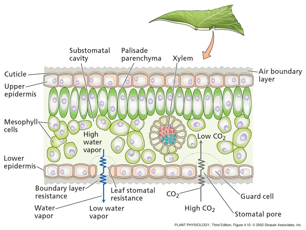 The difference in water vapor concentration is expressed as cwv(leaf) – cwv(air). The water vapor concentration of bulk air (cwv(air)) can be readily measured, but that of the leaf (cwv(leaf)) is more difficult to assess.