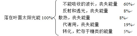 现将落在叶面上的太阳光能的散失和利用的大致情况,归纳如下: