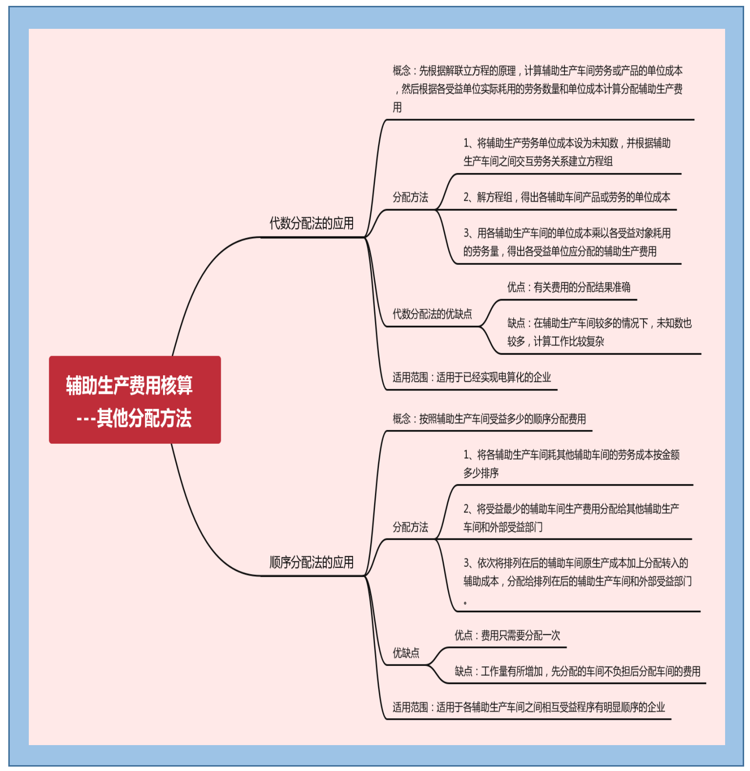 1、了解辅助生产费用的代数分配法和顺序分配法; 2、熟悉辅助生产费用核算的内容; 3、熟悉代数分配法和顺序分配法的分配原理与流程 ; 4、掌握各种分配方法的特点、优缺点与适用条件; 5、能正确设立代数分配法的方程组,排列顺序分配法的分配次序; 6、能正确选择辅助生产费用的分配方法完成费用核算; 7、能发现企业辅助生产车间存在的问题并提出控制措施; 8、养成诚实守信、爱岗敬业、客观公正、坚持准则的职业道德。 |